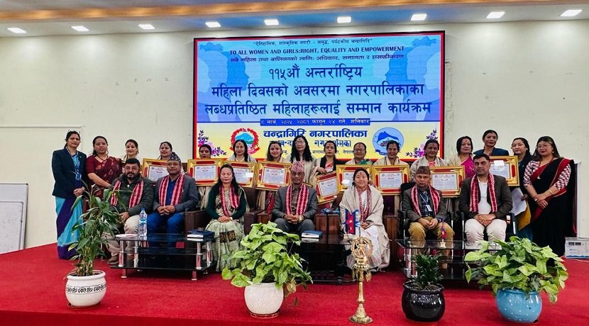 काठमाडौं । चन्द्रागिरि नगरपालिकाले विभिन्न पाँच विधामा उत्कृष्ट योगदान पुर्याएका नगर क्षेत्रका १४ महिलालाई सम्मान गरेको छ । अन्तर्राष्ट्रिय महिला दिवसका अवसरमा चन्द्रागिरि नगरपालिकाद्वारा आज यहाँ आयोजित कार्यक्रममा उनीहरूलाई सम्मान गरिएको हो ।