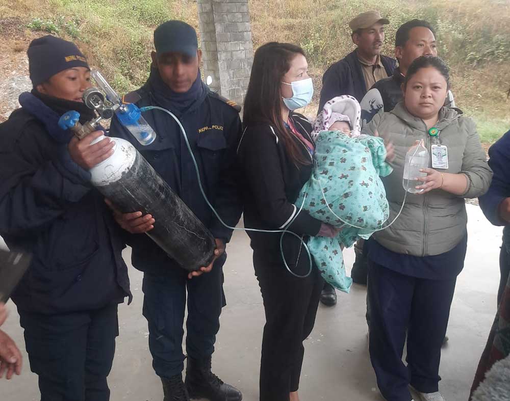 शिशुलाई स्वास प्रश्वासमा समस्या देखिएपछि थप उपचारका लागि नेपाली सेनाको हेलिकप्टरमार्फत् काठमाडाैं पठाइएको जिल्ला प्रहरी कार्यालय सोलुखुम्बुका प्रहरी नायब उपरीक्षक द्वारिकाप्रसाद घिमिरेले जानकारी दिइन ।