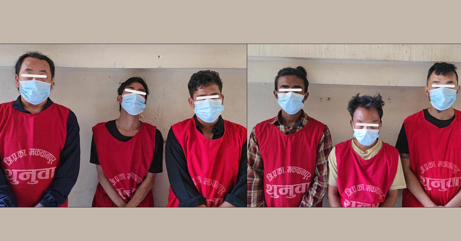 प्रहरीले हेटौँडा उपमहानगरपालिका– ८ ओमनगर टोलबाट तीनजना र हेटौँडा– १० न्युरेनीबाट तीनजनालाई पक्राउ गरेको हो । मकवानपुर प्रहरी प्रवक्ता डिएसपी श्यामु अर्यालका अनुसार ओमनगरस्थित रनिश थापाको घरमा लागुऔषध कारोबार भइरहेको भन्ने सूचनाको आधारमा जिल्ला प्रहरी कार्यालय मकवानपुरबाट पुगेको टोलीले तीनजनालाई पक्राउ गरेको हो ।