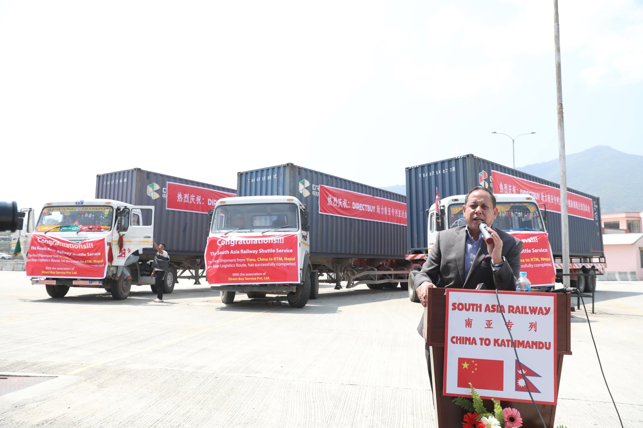 ‘चीनको चहच्याङबाट नेपालको सुख्खा बन्दरगाह काठमाडौँसम्म पहिलो नन(स्टप रेलवे ढुवानीको सफल सुरुवात भएको छ। यो ऐतिहासिक क्षणले चीन र नेपालबीचको व्यापारमा नयाँ युगको संकेत मात्र गर्दैन, चीन र नेपालबीचको आर्थिक तथा व्यापारिक सहकार्यको जग पनि बलियो बनाउँछ,’ उनले भने।