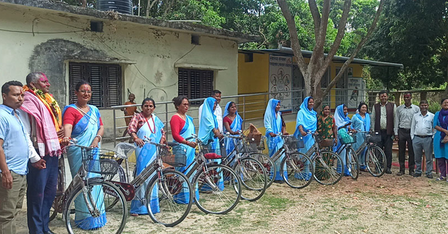 लहान । सिराहाको लहान नगरपालिका २४, गोविन्दपुर स्वास्थ्य चौकीअन्तर्गत कार्यरत महिला स्वास्थ्य स्वयंसेविकाहरूलाई वडा कार्यालयले साइकल वितरण गरेको छ ।