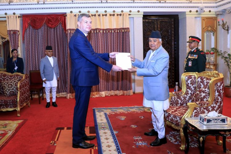 काठमाडौं । राष्ट्रपति रामचन्द्र पौडेलसमक्ष नेपालका लागि विभिन्न पाँच देशका नवनियुक्त गैरआवासीय राजदूतहरूले आ–आफ्नो ओहोदाको प्रमाणपत्र पेस गरेका छन् ।