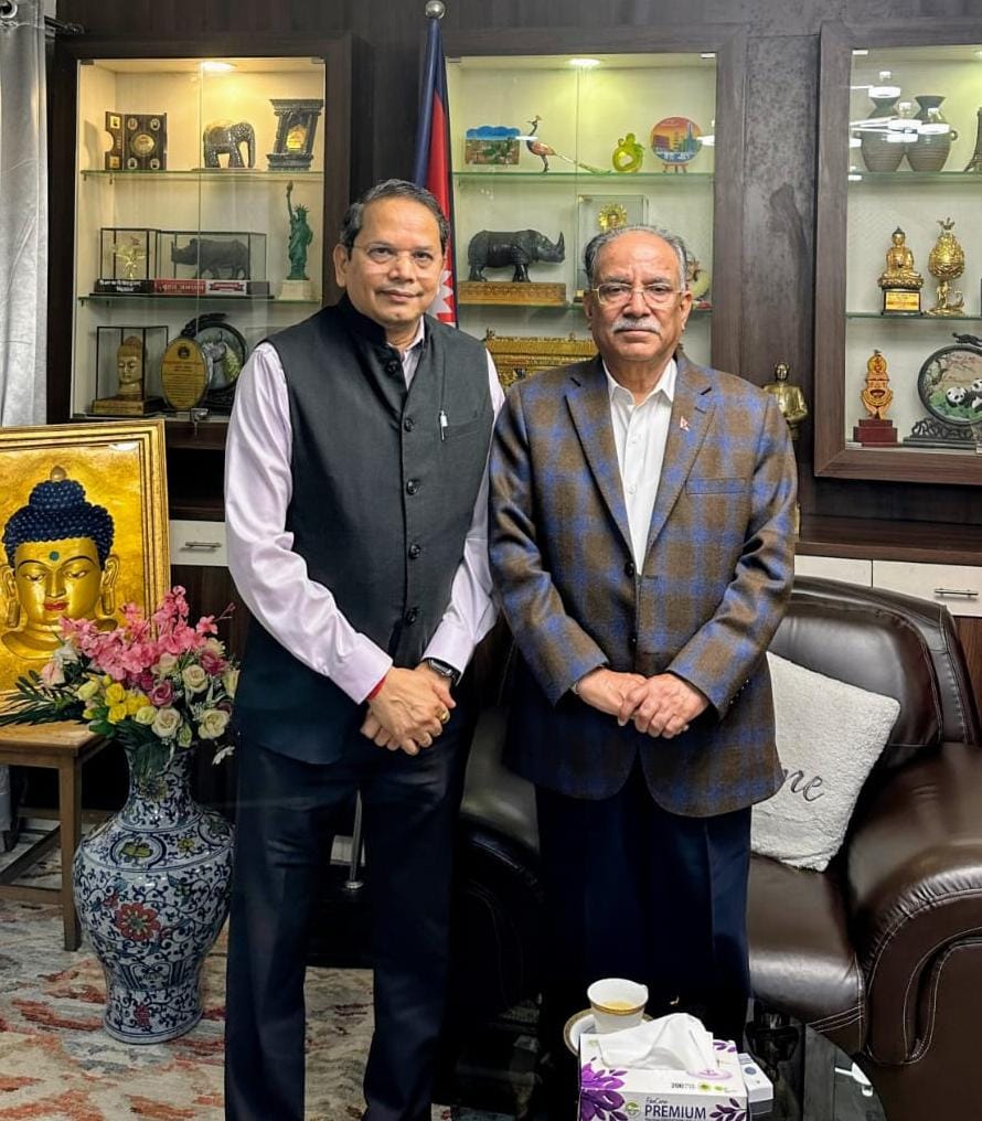 काठमाडौं । पुर्व प्रधानमन्त्री तथा नेकपा माओवादी केन्द्रका अध्यक्ष पुष्पकमल दाहाल प्रचण्ड र भारतीय जनता पार्टीका बिदेश बिभाग प्रमुख बिजय चौथाइवालेका बिचमा भेटबार्ता भएको छ ।