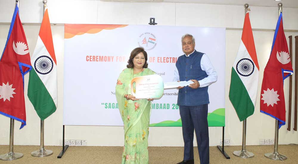 काठमाडौं । नेपाल सरकारले आगामी जेठ २ देखि ४ गतेसम्म आयोजना गर्न लागेको सगरमाथा संवादमा सहयोगस्वरुप भारत सरकारले १५ वटा विद्युतीय सवारीसाधन उपलब्ध गराएको छ ।