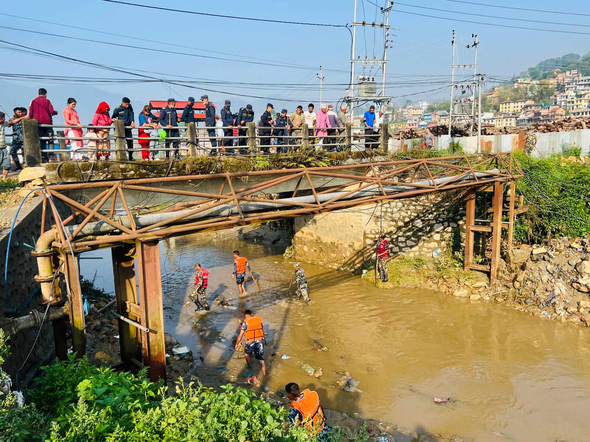 काभ्रेस्थित पनौती नगरपालिका–५ मा बैशाख २९ गते बाढिमा बेपत्ता महिलाको खोजी गर्नका लागि सशष्त्र प्रहरी बल १५ नम्बर गण, काभ्रेको सुरक्षा फौज लागिरहेको हो ।