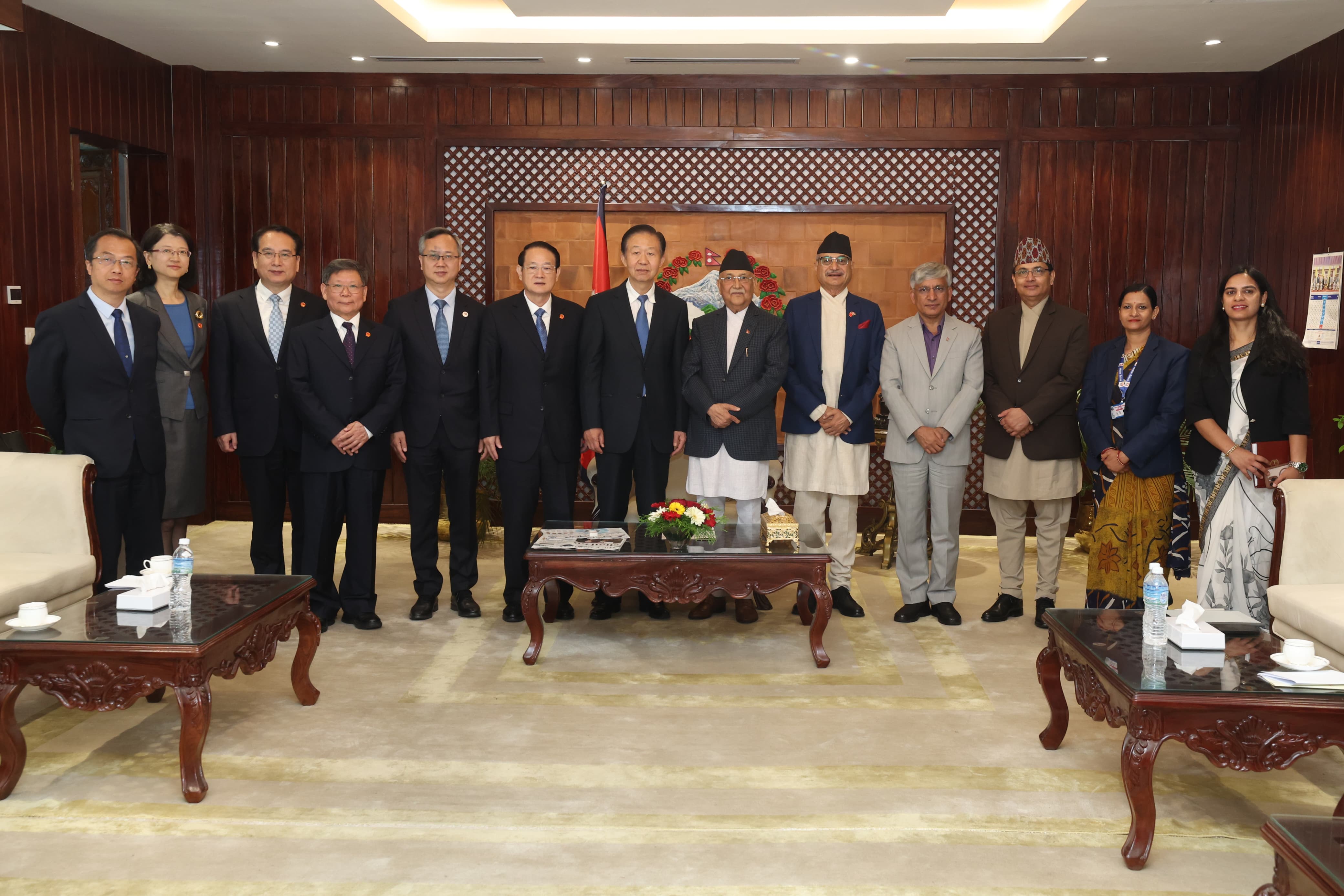 भेटका अवसरमा प्रधानमन्त्रीका मुख्य सल्लाहकार विष्णुप्रसाद रिमाल, नेपालका लागि चिनियाँ राजदूत चन सोङ र चीनका लागि नेपाली राजदूत डा कृष्णप्रसाद ओली, परराष्ट्र मन्त्रालयका उच्चाधिकारीलगायत सहभागी थिए।