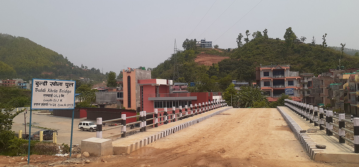 तनहुँ । जिल्लाको व्यास नगरपालिका–१ र २ जोड्ने गरी कराङकाठबाट बसपार्क आवतजावत बुल्दीखोलामा पुल निर्माण गरिएको छ। नगरप्रमुख बैकुण्ठ न्यौपानेले बुल्दीखोलामा एक स्पामको पुल निर्माण गरिएको बताए। पुल निर्माणपछि बसपार्कमा गाडी व्यवस्थापनका साथै सवारी र सर्वसाधारणलाई आवतजावतमा सहज भएको छ।
