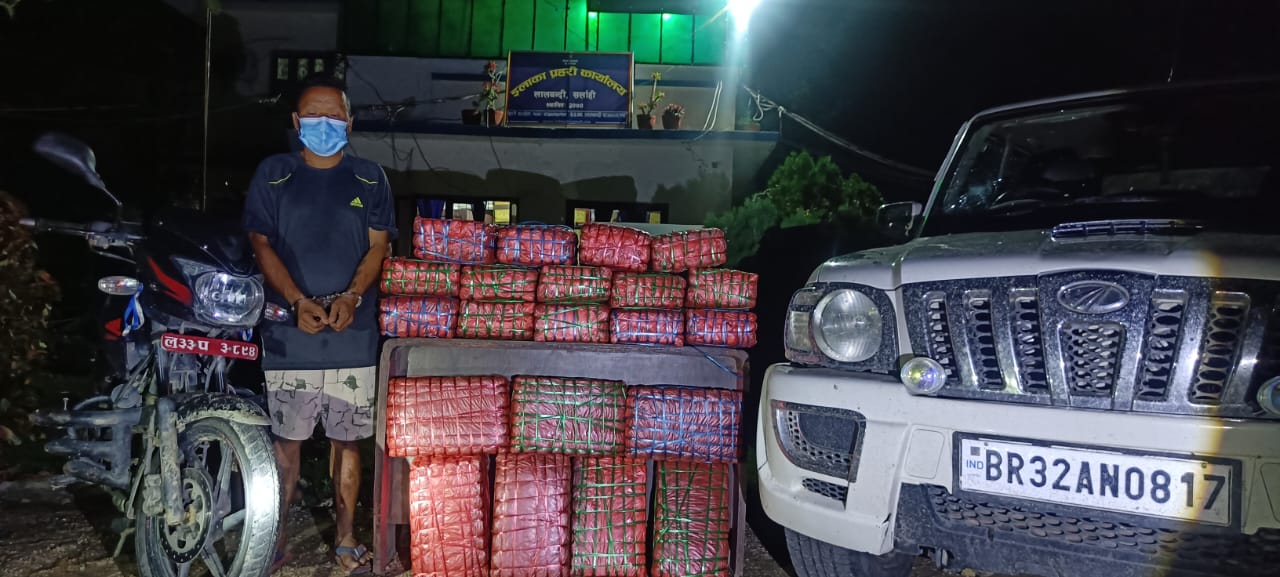 सर्लाहीको अतिविकट क्षेत्रमा लालबन्दी नगरपालिका–१४ डाइनी खोला छेउबाट ११२ केजी ७८ ग्राम गाँजा बोकेको गाडी, मोटरसाईकलसहित १ जना पक्राउ गरेको हो।