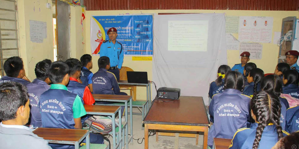 कक्षा ९ देखि १२ सम्मका विद्यार्थीलाई प्रहरीले पढाउन थालेको छ । सिद्धिचरण नगरपालिका–११ को जाल्पा माध्यमिक विद्यालयबाट सुरु भएको साइबर अपराध न्यूनीकरणबारे सचेतना कक्षा ओखलढुङ्गाका सबै पालिकाका विद्यालयमा सञ्चालन हुने जिल्लाका प्रहरी प्रमुख मदन केसीले बताए।