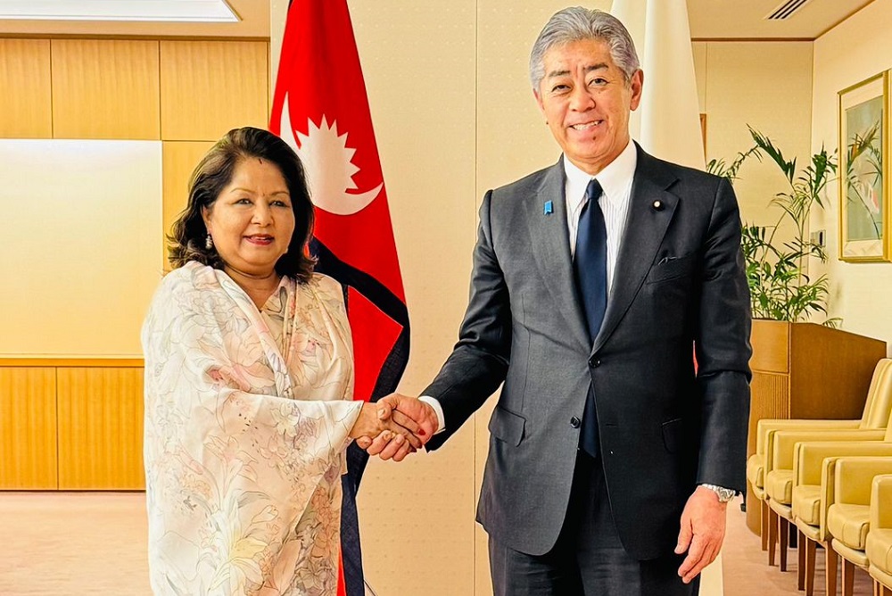 काठमाडौँ । परराष्ट्रमन्त्री डा. आरजु राणा देउवा र जापानका विदेशमन्त्री इवाया ताकेसीबिच बिहीबार टोकियोमा द्विपक्षीय भेटवार्ता भएको छ । जापान भ्रमणमा रहेकी मन्त्री डा। राणा र जापानी विदेशमन्त्री ताकेसीबिच आज टोकियोस्थित विदेश मन्त्रालयमा भेटवार्ता भएको हो ।