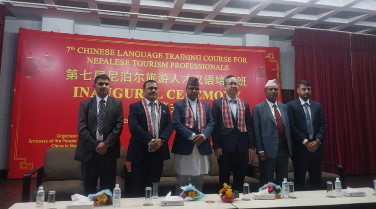 काठमाडाैं । संस्कृति, पर्यटन तथा नागरिक उड्डनमन्त्री बद्रीप्रसाद पाण्डेले चिनियाँ भाषा प्रशिक्षणले नेपालको पर्यटन प्रवर्द्धनमा टेवा पुग्ने बताएका छन् । नेपाल पर्यटन बोर्ड र नेपालस्थित चिनियाँ दूतावासको संयुक्त आयोजनामा सुरु भएको चिनियाँ भाषा प्रशिक्षणको सातौँ ब्याचको आज उद्घाटन गर्दै उनले चिनियाँ भाषा प्रशिक्षणले भाषिक ज्ञानले नेपाल–चीन सम्बन्धमा सेतुको काम गर्नुका साथै पर्यटन प्रवर्द्धनमा सकारात्मक प्रभाव पार्ने बताए ।