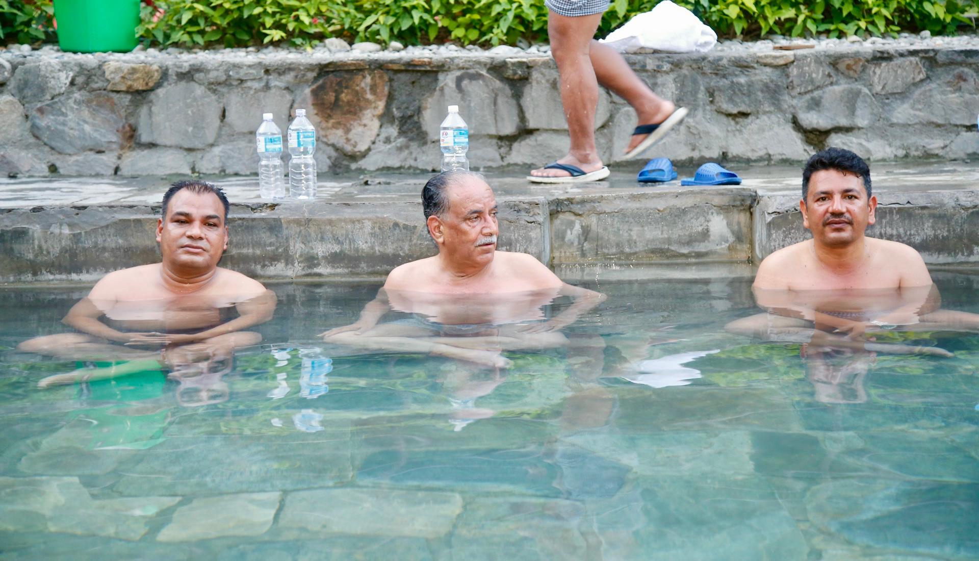 काठमाडौं । नेकपा माओवादी केन्द्रका अध्यक्ष पुष्पकमल दाहाल ‘प्रचण्ड’ तातोपानी कुण्डमा स्नान गरेका छन् ।