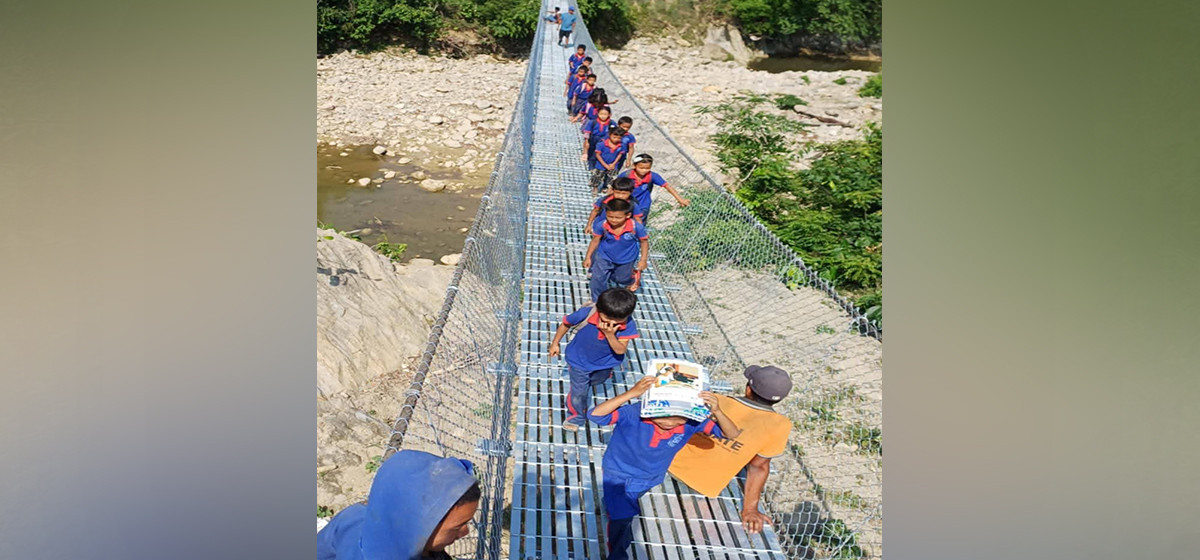 दाङ । दाङको राप्ती गाउँपालिका–९ सिमले र बङ्गलाचुली गाउँपालिका–८ झुण्डी जोड्ने घोसखोलामा पुल बनेपछि विद्यार्थीलाई विद्यालय जान सहज भएको छ।