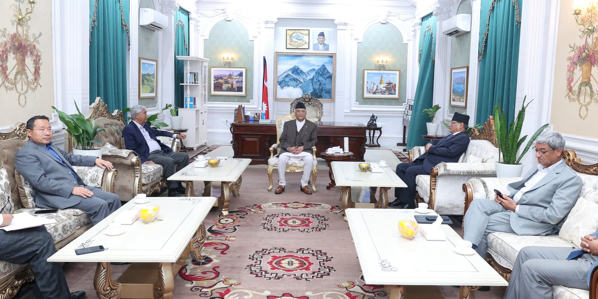 छलफलमा प्रधानमन्त्री ओली, काँग्रेस सभापति देउवा र माओवादी केन्द्रका अध्यक्ष दाहालसहित गृहमन्त्री रमेश लेखक, माओवादी केन्द्रका उपमहासचिव वर्षमान पुन र प्रधानमन्त्रीका विज्ञ सल्लाहकार अग्नि खरेल पनि सहभागी थिए ।