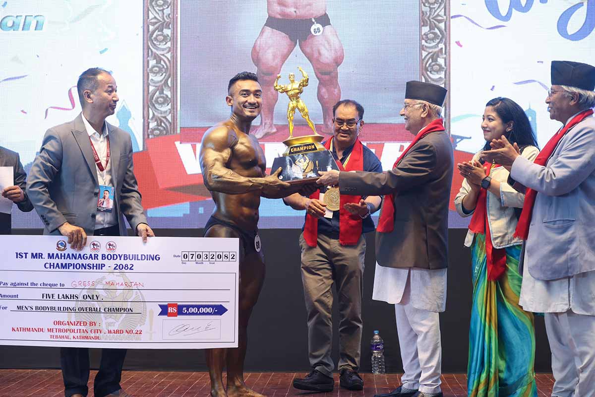 काठमाडौं । प्रधानमन्त्री केपी शर्मा ओलीले ‘फस्ट मिस्टर महानगर बडिबिल्डिङ च्याम्पियनसिप’ का विजेतालाई आज पुरस्कार प्रदान गरेका छन् ।