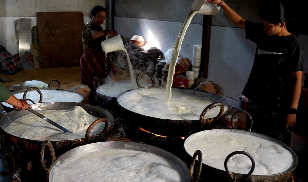 आइतबार दिनभर भक्तपुरका दही व्यवसायीलाई जुजु धौ बनाएर बिक्री गर्न भ्याइनभ्याइ भएको छ । बिहानदेखि जुजु धौ पसलमा उपभोक्ताको भीड थियाे । अरु दिन दैनिक करिब २०० लिटर जुजु धौ बिक्री गर्ने व्यवसायीले आज दुई हजार लिटर दही बिक्री गरेको बताउँछन्, भक्तपुर जगातीका भक्तपुर सैजु जुजु धौका सञ्चालक दशी कान्छा अर्थात् कान्छारामा सैजु।