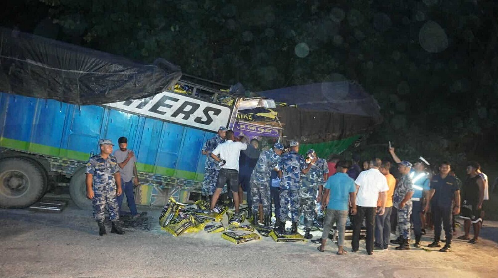 आइतबार राति एउछै दिशाबाट जाँदै गरेको दुई ट्रक एक आपसमा ठोक्किँएर दुर्घटना भएको सशस्त्र प्रहरीका डिएसपी एवम् सहप्रवक्ता शैलेन्द्र थापाले जानकारी दिए । उनका अनुसार टेरिङमा च्यापिका चालकलाई ट्रकको झ्याल काटेर तीन घण्टापछि निकालिएको हो ।