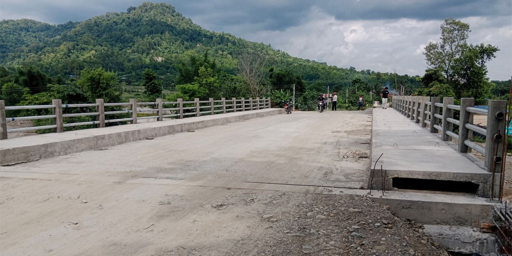 बहुवर्षीय योजना अन्तर्गत झापाको बाहुनडाँगीदेखि खुर्कोट हुँदै महाकालीसम्म १ हजार २ सय किलोमिटर मदन भण्डारी राजमार्ग निर्माणको काम अन्तर्गत पुलहरु निर्माण भइरहेको बताइएको छ । पुल निर्माणमा खटिएको ‘सूर्य एण्ड सन्स निमार्ण कम्पनीका इन्जिनियर उमेश श्रेष्ठका अनुसार बाघ खोला, बगुवा खोला र ठकुरी खोलाको पुल निर्माणको काम ९५ प्रतिशत सम्पन्न भएको छ ।
