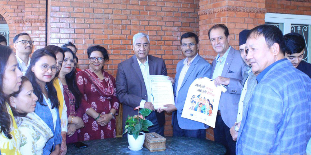 सभापति देउवा निवास बूढानीलकण्ठमा आज नेपाल मतदाता अधिकार मञ्चका अध्यक्ष भक्त विश्वकर्मासहितको टोलीले ‘निर्वाचनसम्बन्धी कानुनलाई संशोधन र एकीकरण गर्न बनेको विधेयक’ मस्यौदामा संशोधनका लागि बुझाएको ज्ञापनपत्र बुझ्दै उनले जनतासँग सिँधै जोडिने भएकाले प्रत्यक्ष निर्वाचनभित्र समानुपालितक प्रतिनिधित्व जरुरी भएको बताए ।