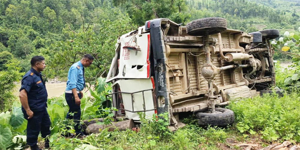 गाडीमा सवार १९ मध्ये १२ जना सामान्य घाइते भएका र ५ जना गम्भीर घाइतेलाई थप उपचारको सुर्खेत पठाएको उनले बताए। उकालोमा यात्रु चढाउन लाग्दा गाडी व्याक गएर सडकबाट करिव १० मीटर तल खोल्सामा खसेको प्रहरीले जनाएको छ । घटनाबारे अनुसन्धान भइरहेको प्रहरीले जनाएको छ ।
