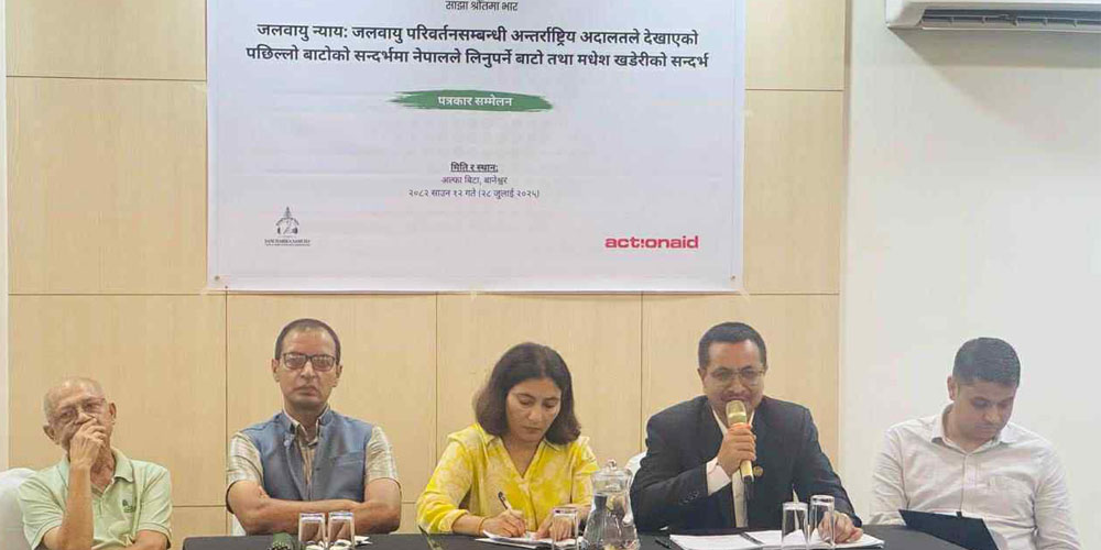 यस्तै, कार्यक्रममा वरिष्ठ अधिवक्ता पदमबहादुर श्रेष्ठले जलवायु परिवर्तनबाट मानव मात्र नभई वन्यजन्तु र वनस्पति समेत प्रभावित भएकाले ति क्षेत्रका मुद्दा समेत उजागर हुनुपर्ने बताए। जलवायु परिवर्तनसम्बन्धी अन्तर्राष्ट्रिय अदालतले वन्यजन्तु र वनस्पतिको मुद्दा उठाउन बाटो देखाएको उनले बताए।