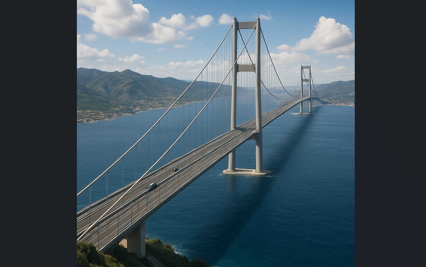 उपप्रधानमन्त्री तथा पूर्वाधारमन्त्री माटेओ साल्भिनीले मेसिनाको जलडमरूमध्यमा निर्माण हुने यो राज्य–वित्त पोषित पुलले इतिहास रच्ने बताए । यो पुल ३.३ किलोमिटर लामो हुने छ, जुन दुईवटा ४०० मिटर अग्ला टावरबीच फैलिनेछ ।