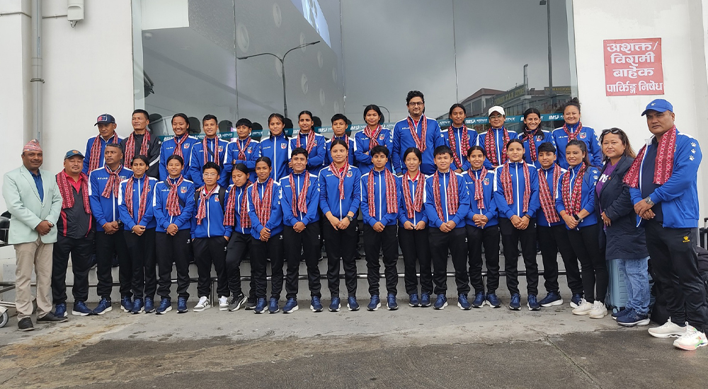 काठमाडौं । एएफसी यु–२० एसियन कप छनोट खेल खेलेर नेपाली महिला फुटबल टोली सोमबार भुटानबाट स्वदेश फर्किएको छ । छनोटको समूह चरणमै बाहिरिएको टोलीलाई त्रिभुवन अन्तर्राष्ट्रिय विमानस्थलमा अखिल नेपाल फुटबल सङ्घ (एन्फा) का पदाधिकारीले स्वागत गरे ।