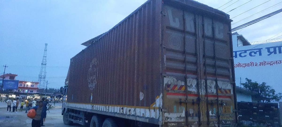 सीमा सुरक्षा गुल्म त्रिनगरबाट खटेको सशस्त्रको टोलीले युपी–३२ एच एन ७२९ नम्बरको कन्टेनरलाई धनगढी उपमहानगरपालिका–२, मिलन चोक क्षेत्रबाट नियन्त्रणमा लिएको सशस्त्र प्रहरी वैद्यनाथ बाहिनी मुख्यालयका सूचना अधिकारी सशस्त्र प्रहरी उपरीक्षक वीरेन्द्रबहादुर ऐरले जानकारी दिए। उनले राजस्व अपचलनमा संलग्न भएको शङ्कामा कन्टेनर नियन्त्रणमा लिइएको बताए।