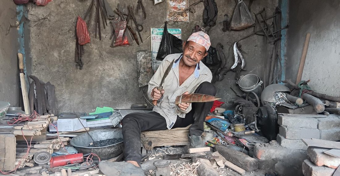 झापा । हल्दीबारी गाउँपालिका–गोलधाप बजार । बिहान सबेरै बजारका पसल क्रमशः खुल्दै थिए । तर एउटा कुनामा रहेको पुरानो पसलभित्र भने ठकठक, टकटक गर्दै फलाम कुटेको आवाज सुनिरहेको थियो । सानो कारखानाभित्र ७० वर्षे रामकुमार बराइली हथौडाले फलाम पिटिरहेका थिए ।