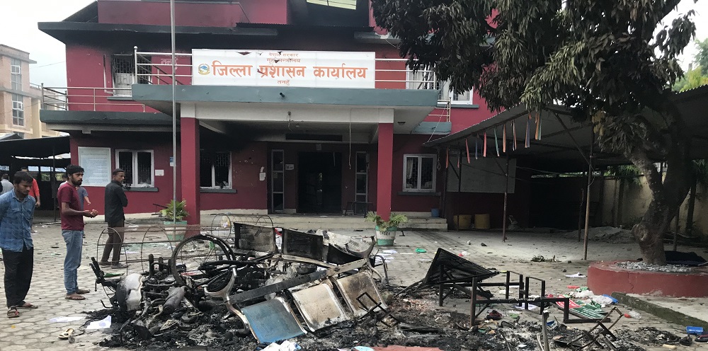 मङ्लबार र बुधबार आन्दोलन चर्किदा जिल्लास्थित दर्जनौँ सरकारी कार्यालयमा आगजनी र तोडफोड भएको छ । जिल्ला समन्वय समिति, मालपोत कार्यालय, जिल्ला प्रशासन कार्यालय, जिल्ला अदालत, जिल्ला कारागार, खानेपानी तथा सरसफाई डिभिजन कार्यालय, उर्जा तथा जलस्रोत विकास डिभिजन कार्यालय, सरकारी वकिलको कार्यालय लगायतका संरचना ध्वस्त भएको जिल्ला प्रहरी कार्यालय तनहुँले जनाएको छ ।