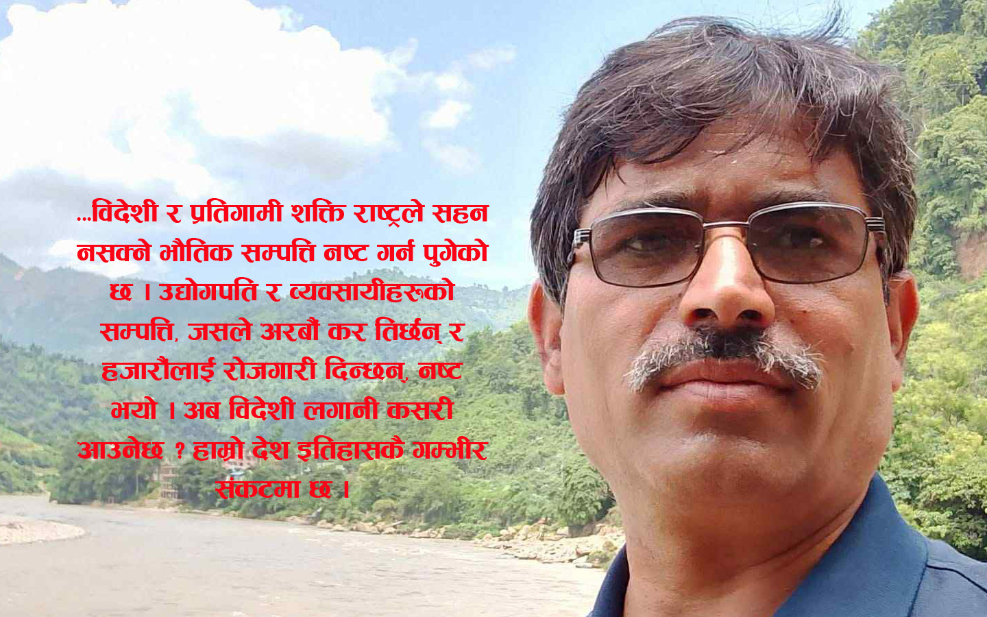 तर विद्रोहसँगै विदेशी र प्रतिगामी शक्ति राष्ट्रले सहन नसक्ने भौतिक सम्पत्ति नष्ट गर्न पुगेको छ । उद्योगपति र व्यवसायीहरूको सम्पत्ति, जसले अरबौं कर तिर्छन् र हजारौंलाई रोजगारी दिन्छन्, नष्ट भयो । अब विदेशी लगानी कसरी आउनेछ ? हाम्रो देश इतिहासकै गम्भीर संकटमा छ ।