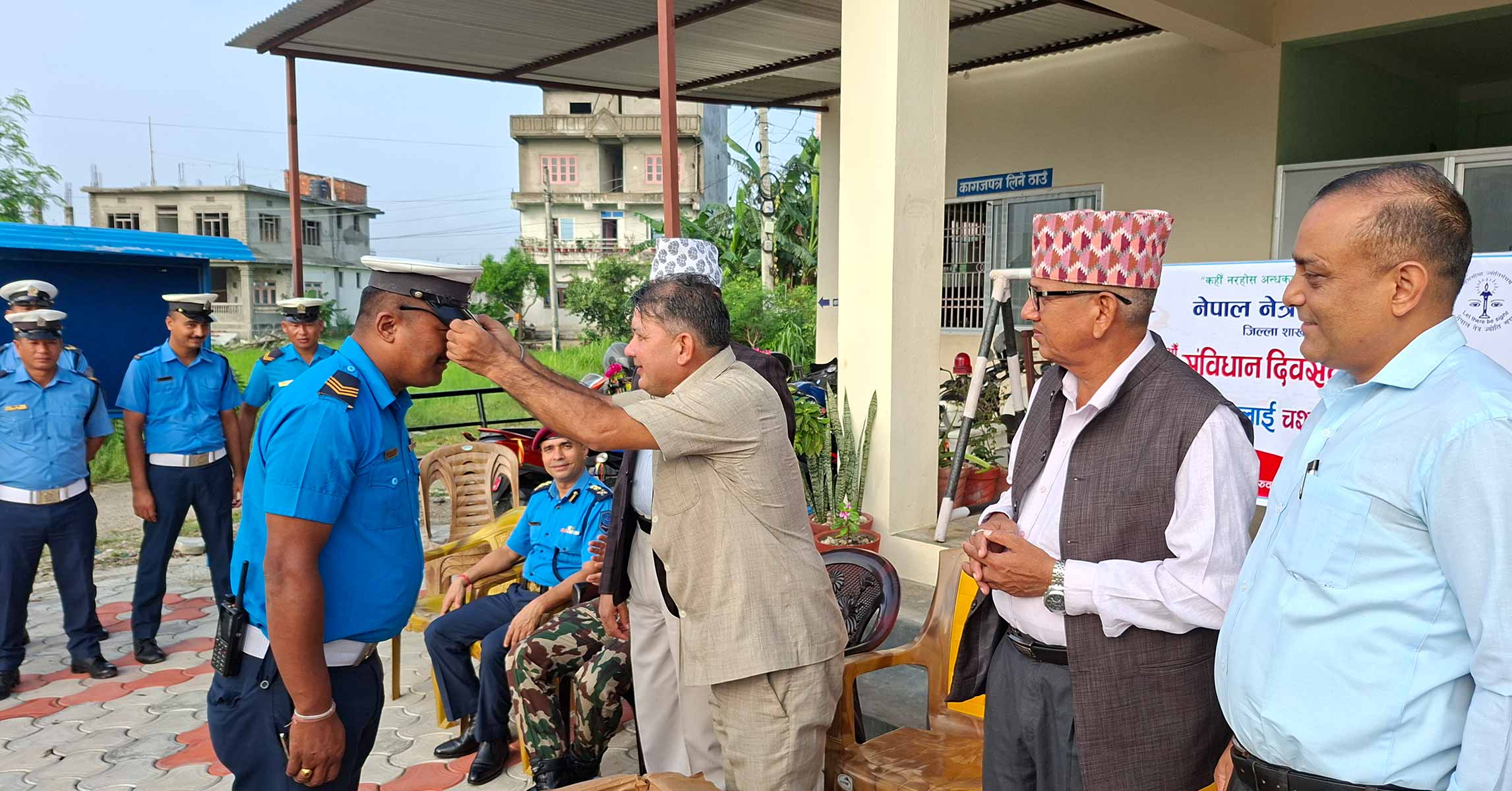 उदयपुर । संविधान दिवसको अवसरमा उदयपुरका ट्राफिक प्रहरीलाई चस्मा वितरण गरिएको छ । मूल समारोह समितिले जिल्ला समन्वय समितिमा गरेको अन्तरक्रिया कार्यक्रममा नेपाल नेत्र ज्योती संघ उदयपुरले ट्राफिक प्रहरीलाई कालो चस्मा प्रदान गरेको हो ।