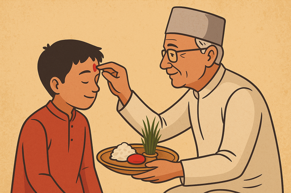 कैलाली । कैलालीका अविन शर्माले यस वर्ष दसैँमा मान्यजनबाट टीका लगाएर दक्षिणा दुई हजार ५० प्राप्त गरे । कक्षा ७ मा अध्ययनरत उनले सो रकमलाई अध्ययनका लागि आवश्यक कापी, कलम, चित्र बनाउन आवश्यक ‘कलर’ र रङ्गीन पेरपर किन्ने तयारीमा रहेको जानकारी दिए ।