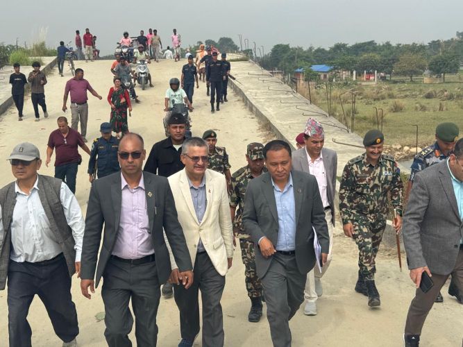हुलाकी राजमार्गअन्तर्गत झापा गाउँपालिका—२ र गौरीगञ्ज गाउँपालिका—१ जोड्ने कन्काई पुलको स्थलगत निरीक्षण गरी मन्त्री घिसिङले निर्माण प्रगतिबारे जानकारी लिनुकासाथै स्थानीयसँग छलफल गरेको छन् ।