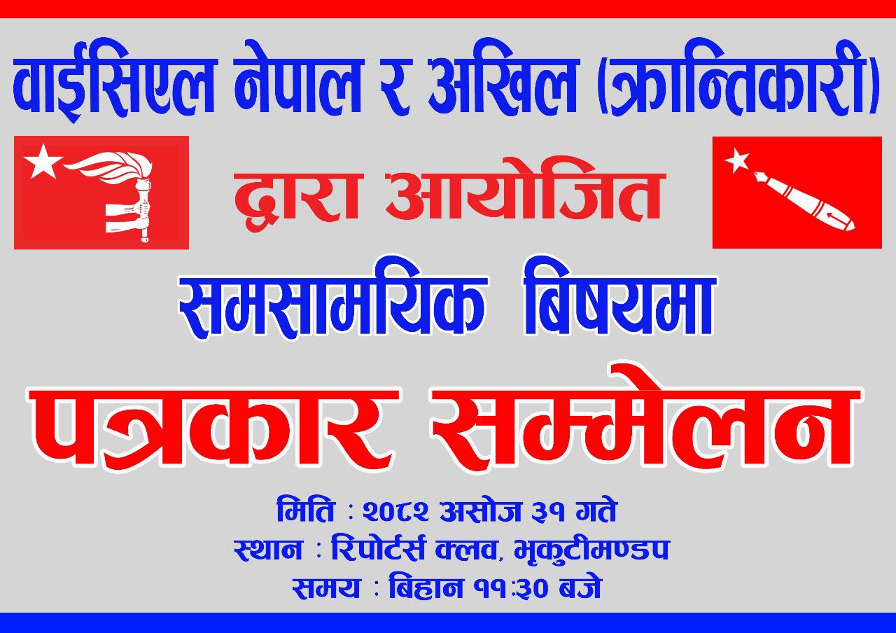 यसपटक वाइसिएलको स्वर सरकारमाथि छ, त्यो पनि आफ्नै सरकारमाथि । शुक्रवार काठमाडौंमा अनेरास्ववियु (क्रान्तिकारी) सँग संयुक्त पत्रकार सम्मेलन गर्दै वाइसिएलका अध्यक्ष पुष्प ओलीले ठाडो माग राखे “प्रधानमन्त्री सुशीला कार्कीको पनि सम्पत्ति छानबिन होस्।”