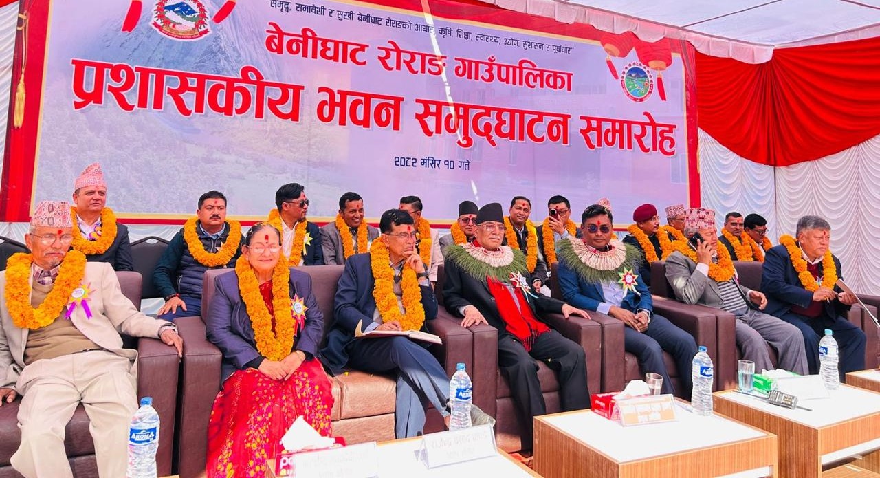 नयाँ प्रशासकीय भवनलाई ‘मौलिक र विशेष’ भन्दै उनले स्थानीय तहबाट अझ प्रभावकारी सेवा प्रवाहको अपेक्षा व्यक्त गरे बेनीघाट गाउँपालिका र धादिङबासीलाई गाउँमै सिंहदरबार आएकोमा बधाई दिँदै राष्ट्रिय सहमति, स्थिरता र जनमैत्री शासनका लागि एकजुट हुन अपिल गरे ।
