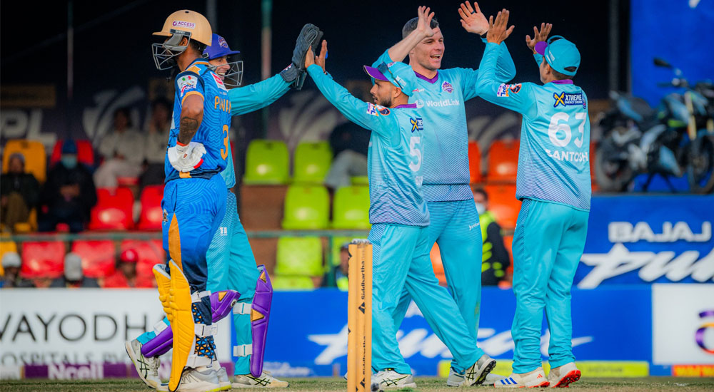 कीर्तिपुरस्थित त्रिवि क्रिकेट मैदानमा आइतबार साँझ भएको खेलमा काठमान्डुले कर्णाली याक्सलाई पाँच विकेटले पराजित गर्दै प्लेअफ नजिकिएको हो ।