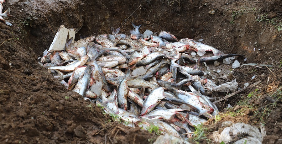 गत भदौमा समेत कागजात अर्थात बिल नै उल्लेख नभएको माछा जिल्ला भित्रिएको पाइएपछि नियन्त्रणमा लिई करिब दुई सय ५० केजी माछा नष्ट गरिएको थियो । सोही समयमा समेत व्यवसायीलाई सचेत गराइएको तर अटेर गरी पुन बिलमा उल्लेख गरिएको भन्दा भारतबाट फरक प्रजातिको माछा भित्र्याएकाले नियन्त्रणमा लिइएको गुल्मपति पाठकले बताए । माछा जनप्रतिनिधि, नेपाल प्रहरी, भेटनरी अस्पताल तथा पशु सेवा विज्ञ केन्द्र ताप्लेजुङका प्रतिनिधि र सञ्चारकर्मीको रोहबरमा खाल्डोमा पुरी नष्ट गरिएको छ ।