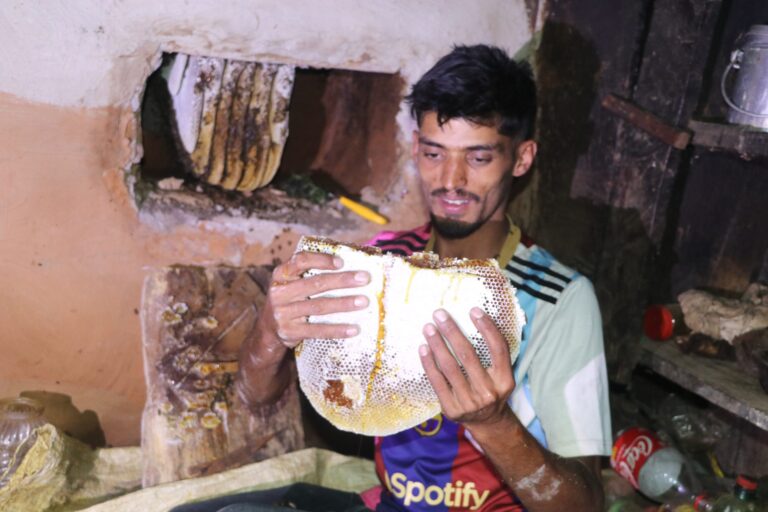 “विसं २०७२ को विनाशकारी भूकम्पले केही क्षति गरे पनि खरले छाएको घुमाउने घरभित्र नित्य पूजा गर्ने र चोखो जल चढाउने खोपामा अहिले मौरीले भरिएको छ”, ढकालले भने, “गत वर्ष उक्त खोप्पाबाट १४ किलो मह उत्पादन भई बिक्रीबाट रु २० हजार आम्दानी भएको थियो ।”