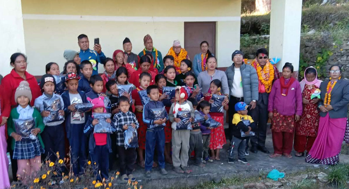 दोलखा । भीमेश्वर नगरपालिका–२ स्थित सामुदायिक तिखातल प्राथमिक विद्यालयमा अध्ययनरत विपन्न तथा सीमान्तकृत थामी समुदायका बालबालिकालाई न्यानो कपडा (ट्रयाक सुट) वितरण गरिएको छ ।