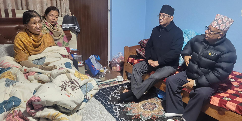 गत साता भारतमा उपचार गराएर फर्किकी चित्रकारलाई भेट्न संयोजक दाहाल र सहसंयोजक नेपाल आज बिहान डल्लुस्थित खनाल निवास पुगेको हो । उनको स्वास्थ्य अवस्था जोखिमुक्त रहेको र उपचार जारी रहेको पूर्वप्रम खनालले दिएको संयोजक दाहालको निजी सचिवालयले जनाएको छ ।