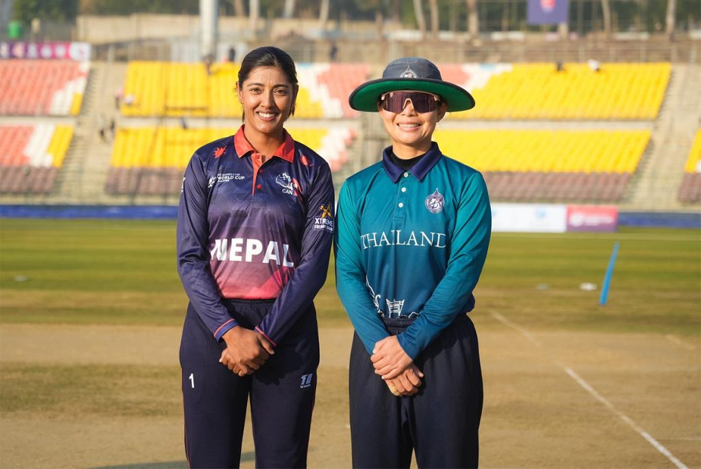 थाइल्यान्डकी कप्तान नारुमोल चाइवाइले टस जितेर पहिले बलिङ रोजिन्। प्रतियोगिताको समूह ‘बी’ मा रहेको नेपालले थाइल्यान्ड, नेदरल्यान्ड्स, जिम्बाबे र स्कटल्यान्डसँग खेल्नेछ ।