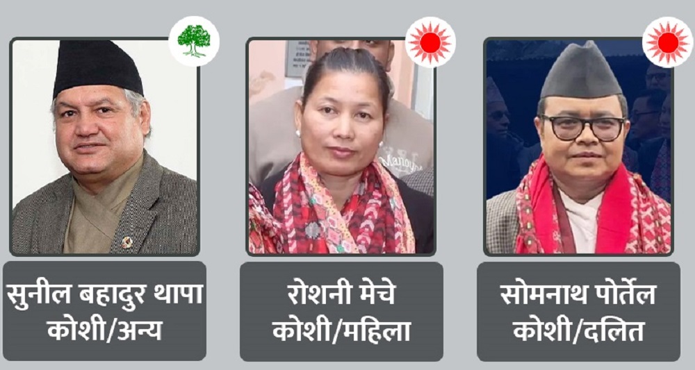 नेपाली कांग्रेसका सुनिलबहादुर थापा, नेकपा एमालेका सोम पोर्तेल र रोशनी मेचे ६ वर्षे कार्यकालका लागि राष्ट्रिय सभामा पुगेका छन्। गठबन्धनको कारण उनीहरूको जित अपेक्षित भए पनि, उनीहरूले बोकेका राजनीतिक सन्देश भने फरक–फरक छन्।
