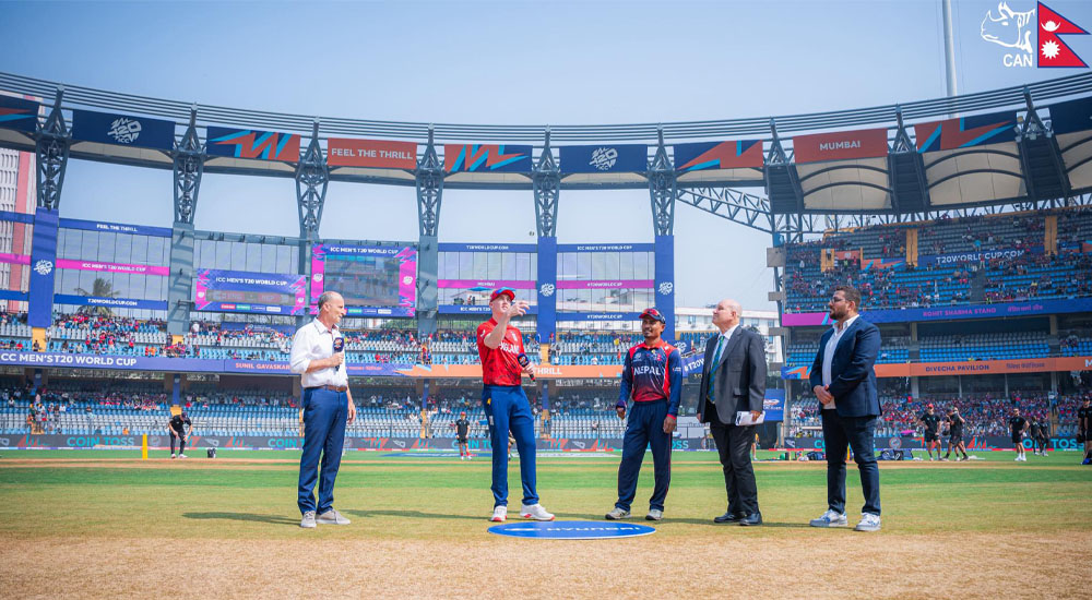 काठमाडौं। आईसीसी टी–२० विश्वकप २०२६ भारत र श्रीलंकामा जारी छ। मुम्बइस्थित वाङ्खडे स्टेडियममा नेपालले आज आफ्नो पहिलो खेल खेल्दैछ। खेलको टसमा नेपाल ह...
