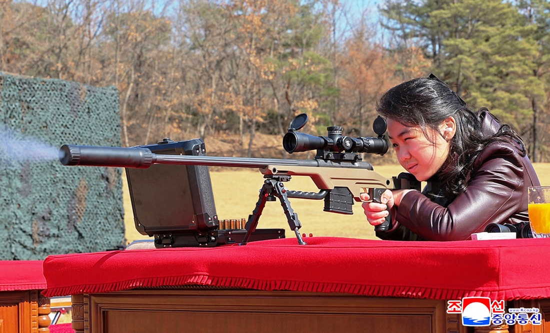 तस्बिरमा किमकी छोरी पनि राइफल समातेको देखिएकी छन् । नोभेम्बर २०२२ मा अन्तरमहादेशीय मिसाइल परीक्षणका क्रममा पहिलोपटक सार्वजनिक रूपमा देखिएकी किम जु ए त्यसयता विभिन्न सैन्य प्रदर्शन, औद्योगिक कार्यक्रम र कूटनीतिक भेटघाटमा बुवासँगै देखिँदै आएकी छन् । हाल करिब १३ वर्षकी मानिने उनलाई उत्तराधिकारी बनाउने तयारीबारे दक्षिण कोरियाली अधिकारीले चासोपूर्वक निगरानी गर्दै आएका छन् ।