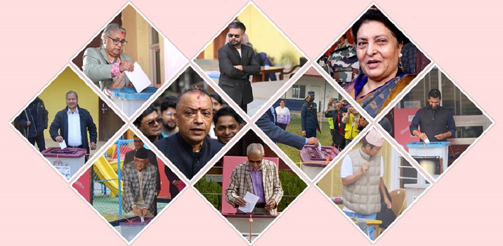 काठमाडौँ । प्रतिनिधिसभा सदस्य निर्वाचनका क्रममा प्रधानमन्त्री, पूर्वराष्ट्रपति, पूर्वप्रधानमन्त्री तथा विभिन्न राजनीतिक दलका शीर्ष नेताहरूले मतदान गरे...