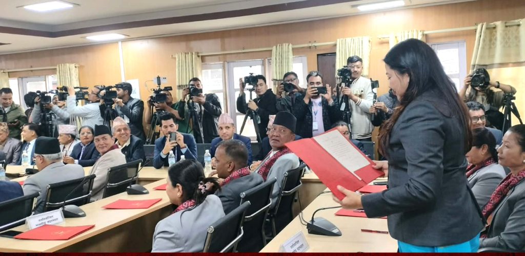 विशेष समारोहका क्रममा राष्ट्रिय सभा अध्यक्ष नारायणप्रसाद दाहालले नव निर्वाचित सदस्यहरूलाई शपथ गराएका हुन्। माघ ११ को निर्वाचनमा १८ जना नयाँ सांसद निर्वाचित भएका थिए।