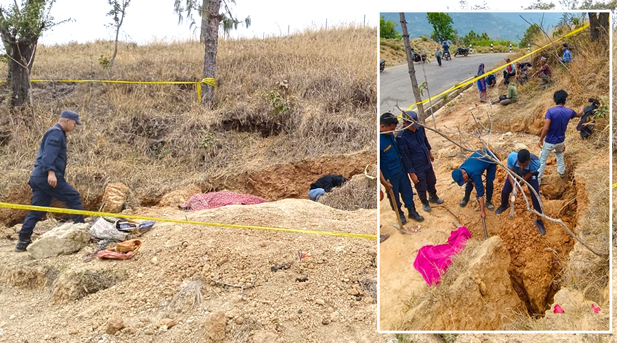 रोल्पा । रोल्पामा घर पोत्ने माटो खन्ने क्रममा ढिस्कोले पूरिएर एक महिलाको ज्यान गएको छ, भने तीन जना घाइते भएका छन् । रुन्टीगढी गाउँपालिका–७ खाक्सीवनकी ...
