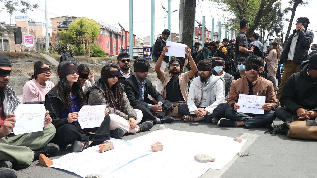 सोमबार काठमाडौँको माइतीघर मण्डलामा अलायन्सका सदस्यहरूले आँखामा कालो पट्टी बाँधेर मौन विरोध प्रदर्शन गरेका छन्। उनीहरूले सरकारलाई दबाब दिने उद्देश्यले यस प्रदर्शनको आयोजना गरेका हुन्।