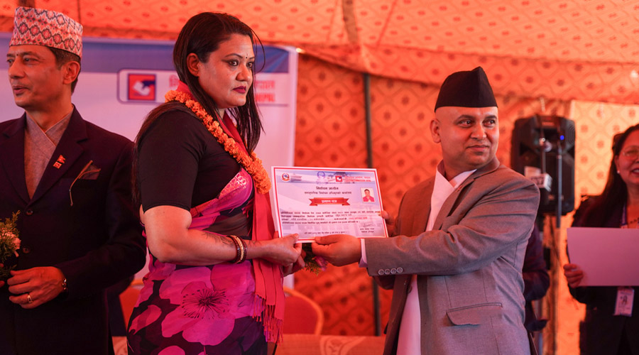 काठमाडौं। प्रतिनिधिसभाको समानुपातिकतर्फ निर्वाचित ११० सांसदलाई बिहीबार निर्वाचन आयोगले प्रमाणपत्र प्रदान गरेको छ। आयोग परिसरमा उत्साह, गम्भीरता र जिम्...